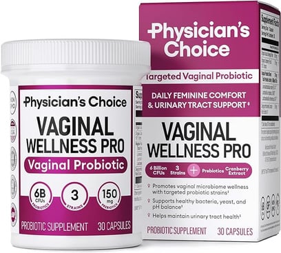 Physician's CHOICE Vaginal Probiotics for Women - Unique with Licorice Root - PH Balance, Odor Control, Yeast, Vaginal Microbiome & Feminine Health - 6B CFU - Organic Prebiotic, Cranberry - 30 CT