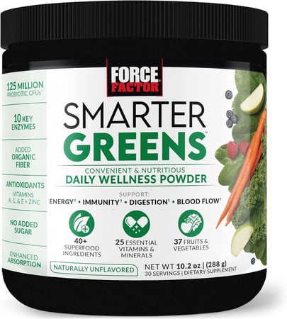 FORCE FACTOR Smarter Greens Daily Wellness Powder to Support Energy, Immunity & Digestion, Greens Powder, Superfood Powder with Vitamins, Minerals, and Probiotics, Naturally Unflavored, 30 Servings